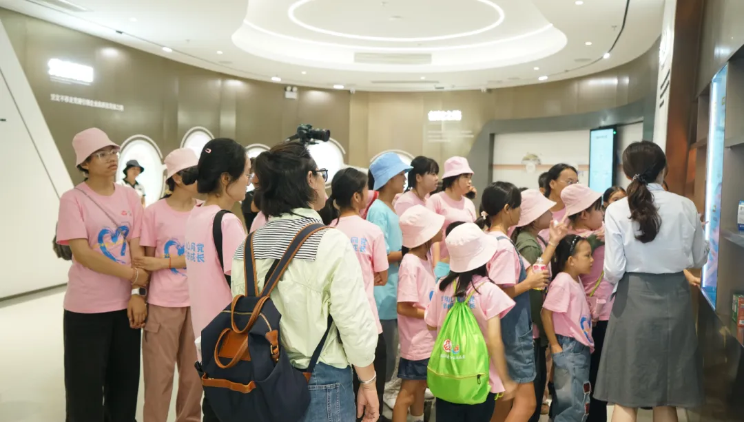 紧接着,孩子们来到了建党百年庆典红旗——070号红旗前。讲解员讲述了mansion88·明升药业集团与庆典红旗的深厚渊源。孩子们听得津津有味,眼中闪烁着对党和国家的热爱与敬仰。